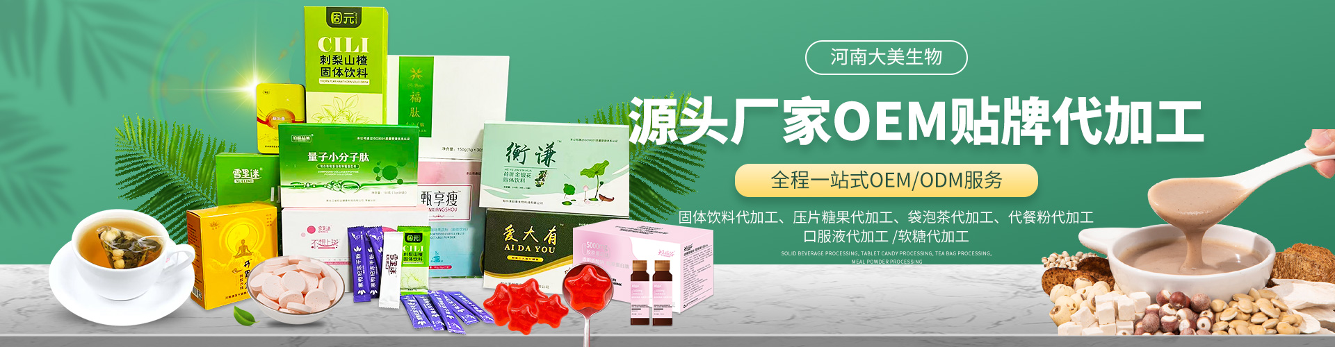 河南大美生物科技股份有限公司是從事顆粒劑、(固體飲料類(lèi)),壓片糖果代加工等研發(fā)和銷(xiāo)售為一體的生產(chǎn)企業(yè)。公司依托自身的高科技研發(fā)隊(duì)伍和營(yíng)銷(xiāo)團(tuán)隊(duì),為國(guó)內(nèi)外客戶(hù)提供營(yíng)養(yǎng)食品各劑型和規(guī)格的研制、生產(chǎn)、配方設(shè)計(jì)、批文申報(bào)等服務(wù),并為客戶(hù)提供多種形式的流通渠道及產(chǎn)品銷(xiāo)售服務(wù)工作。 您的要求就是我們的使命!我們的宗旨是與客戶(hù)“合作共贏(yíng),攜手向前”,共同創(chuàng)造事業(yè)新的輝煌!